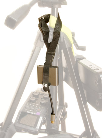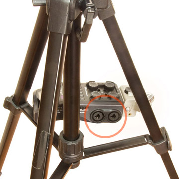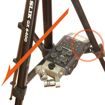 レコーダー右側の差し込み口を三脚のポールでふさがないようにする。