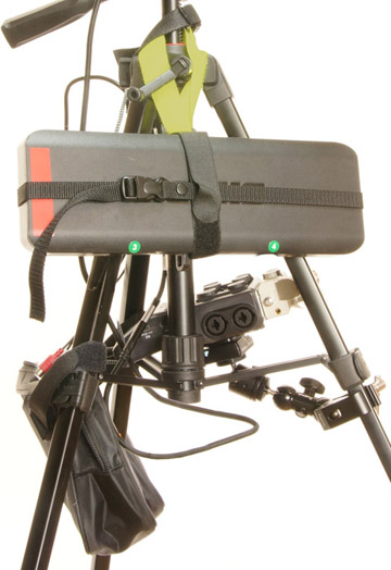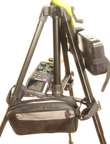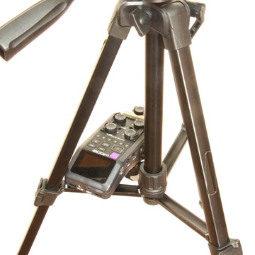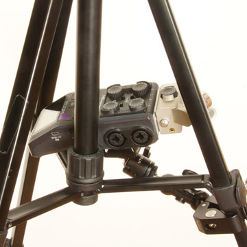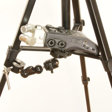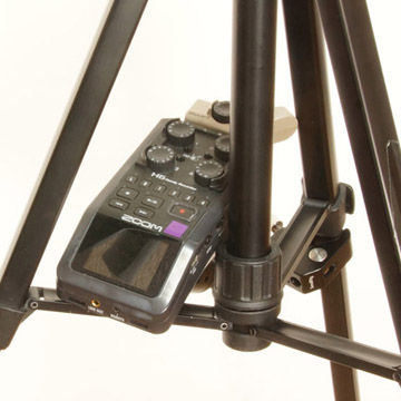 録音機の後端部が三脚のブリッジの上に乗っかるような位置です。