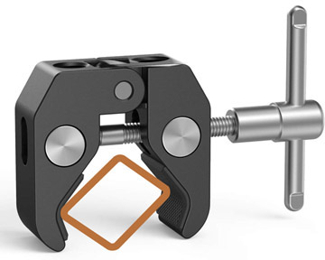 三脚の足の断面は長方形です。クランプで挟み込む時に、図のように長方形の角を対角線として挟まないとゆるんでしまいます。
