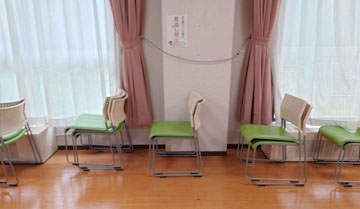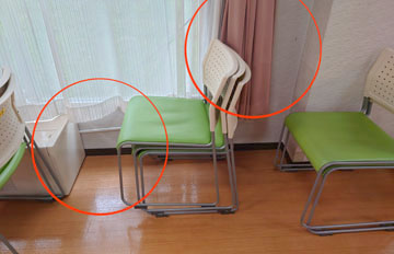 @ 4列目の座席の背中がパーテーションに当たるように置く