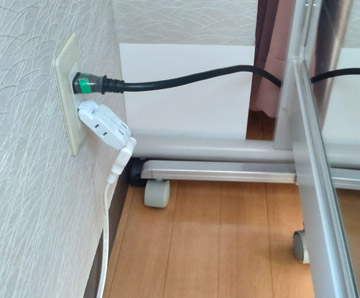@ 鏡の裏側にコンセントがあるので2つの電源コードを設置してください。