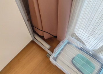 窓ぎわに沿って這わせて窓の中央あたりまで引っ張ってください。