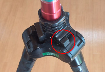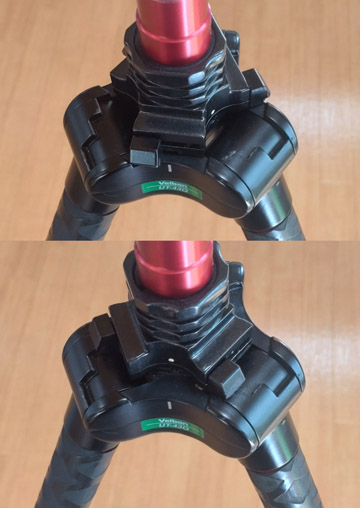 通常は動かす必要はありませんが、この部分が左端に寄っていないと、三脚の脚の開く角度が広くなってしまいますので一応確認してください。