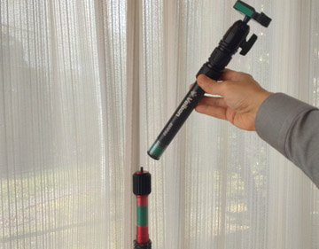 取り付ける際は、ポール単体を取り付けてください。電動雲台をつけたままだと重心が上に行ってしまい、ネジの回転軸がぶれてネジを痛める可能性があるからです。