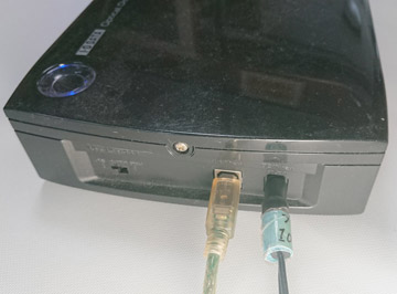 H外付けDVDプレイヤーに「USB」と「電源」を接続する。