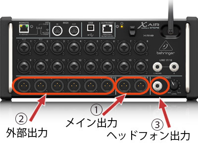 「デジタルミキサーXR18」から音声を取り出す部分はこれらです。