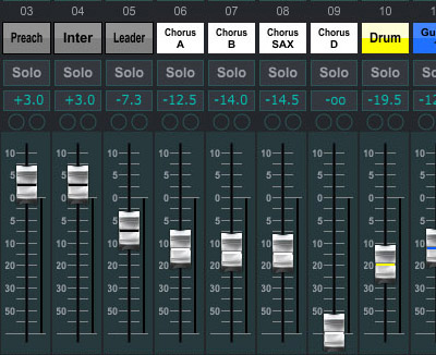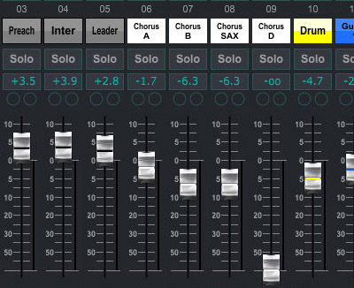 だからといって賛美の時間に低めの音量にすると、メッセージの時間の音量が不足します。説教者用と通訳者用のマイクののボリュームが全体より大きくすることによってそれらを両立させることができるのです。