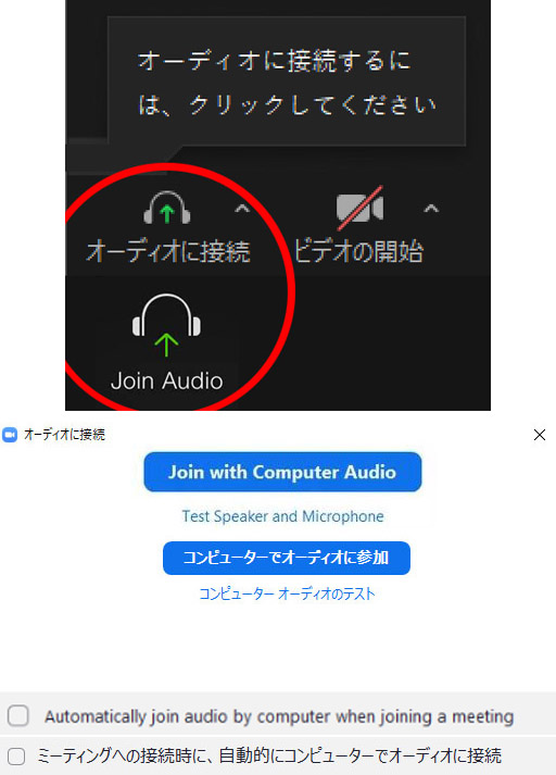 実行しないの意味はマイクオフというだけでなく「コンピューターでオーディオに参加する」を実行しない。という意味です。