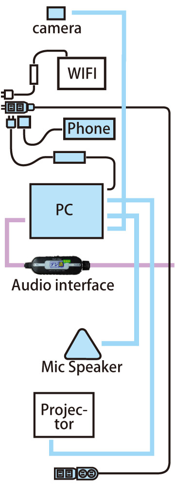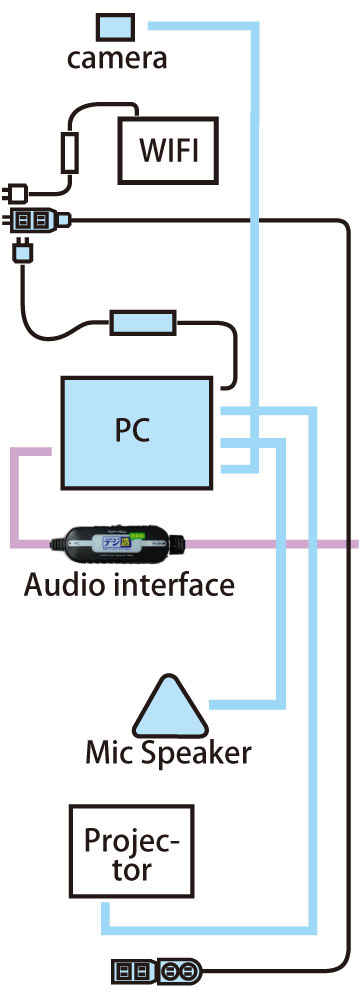 *All equipment shown in the photo is lavender in color (■) except for the wireless microphone speaker at the community center.