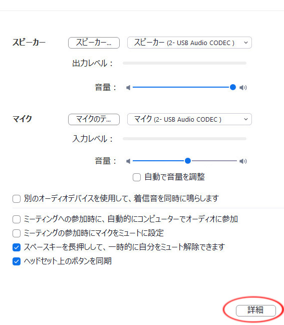 一番下にある「オーディオ設定」をクリックする