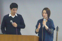 Nuestra Iglesia tiene una reunión bilingüe. La predicación es en japonés con traducción al Inglés o en Inglés con traducción al japonés. Hacemos esto para que los extranjeros pueden ser capaces de escuchar los mensajes. Pero esa no es la única razón. Lo hacemos también para que los japoneses pueden ser capaces de aprender Inglés.